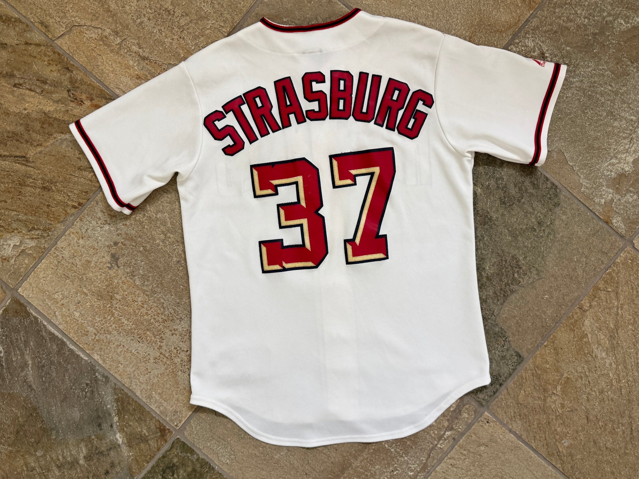 Vintage Washington Nationals Stephen Strasburg Majestic Baseball Jersey, Size Medium. Minor wear on back numbers. Very good, used condition overall. See photos for measurements.