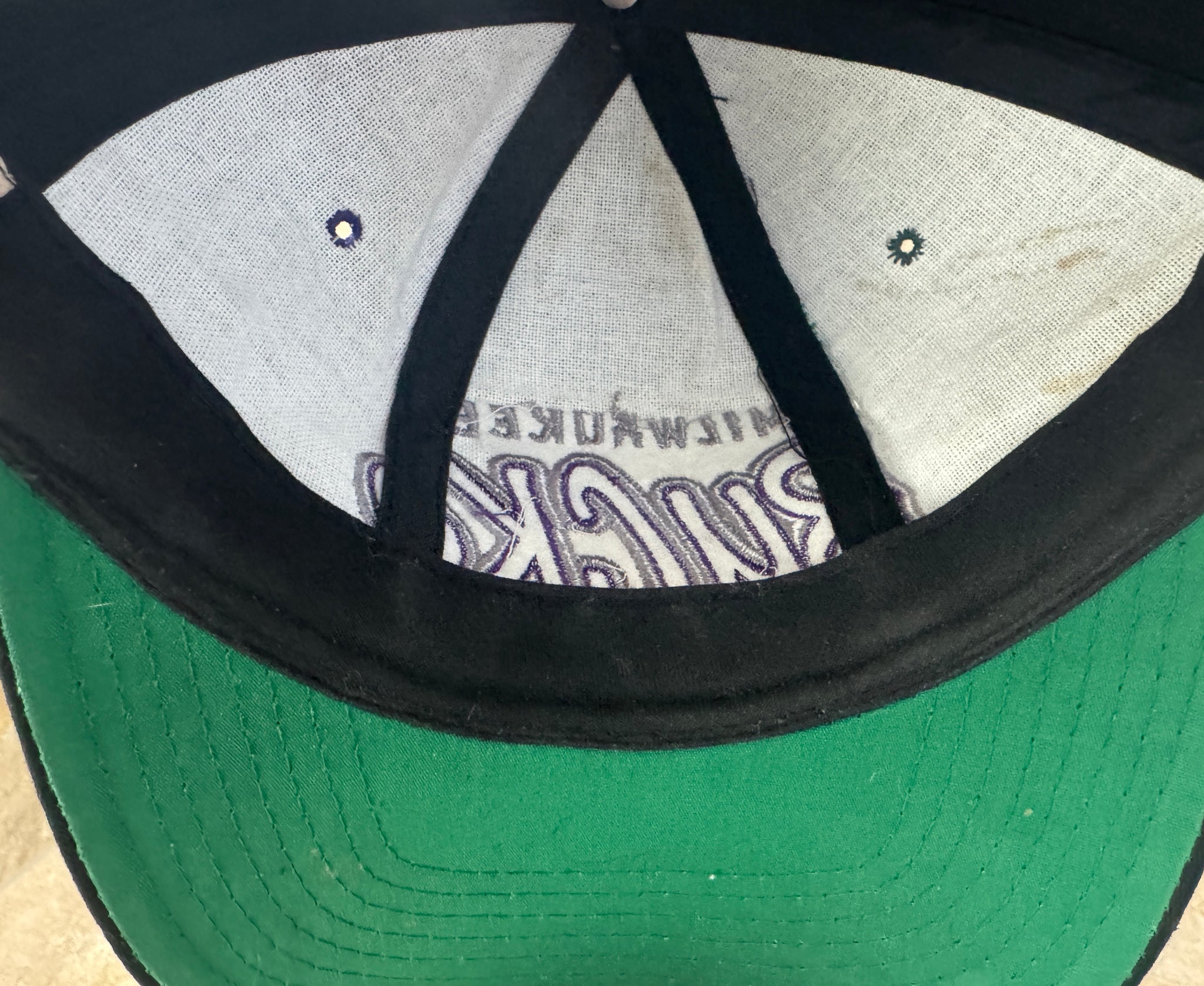 Vintage 90s Milwaukee Bucks Starter Tri Power the classic Snapback Basketball Hat. Color block graffiti block script. Twill. Good, used condition. See photos