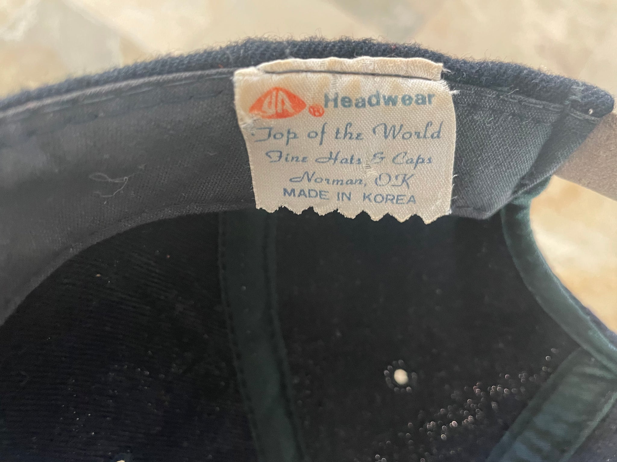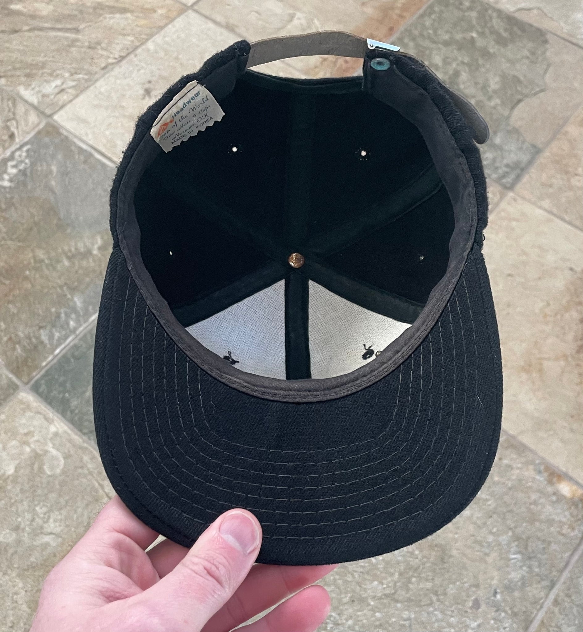 Vintage 80s Oklahoma State University OSU Cowboys top of the world ToW leather Strapback College Hat. Wool script front. Minor wear. No significant flaws or issues. See photos