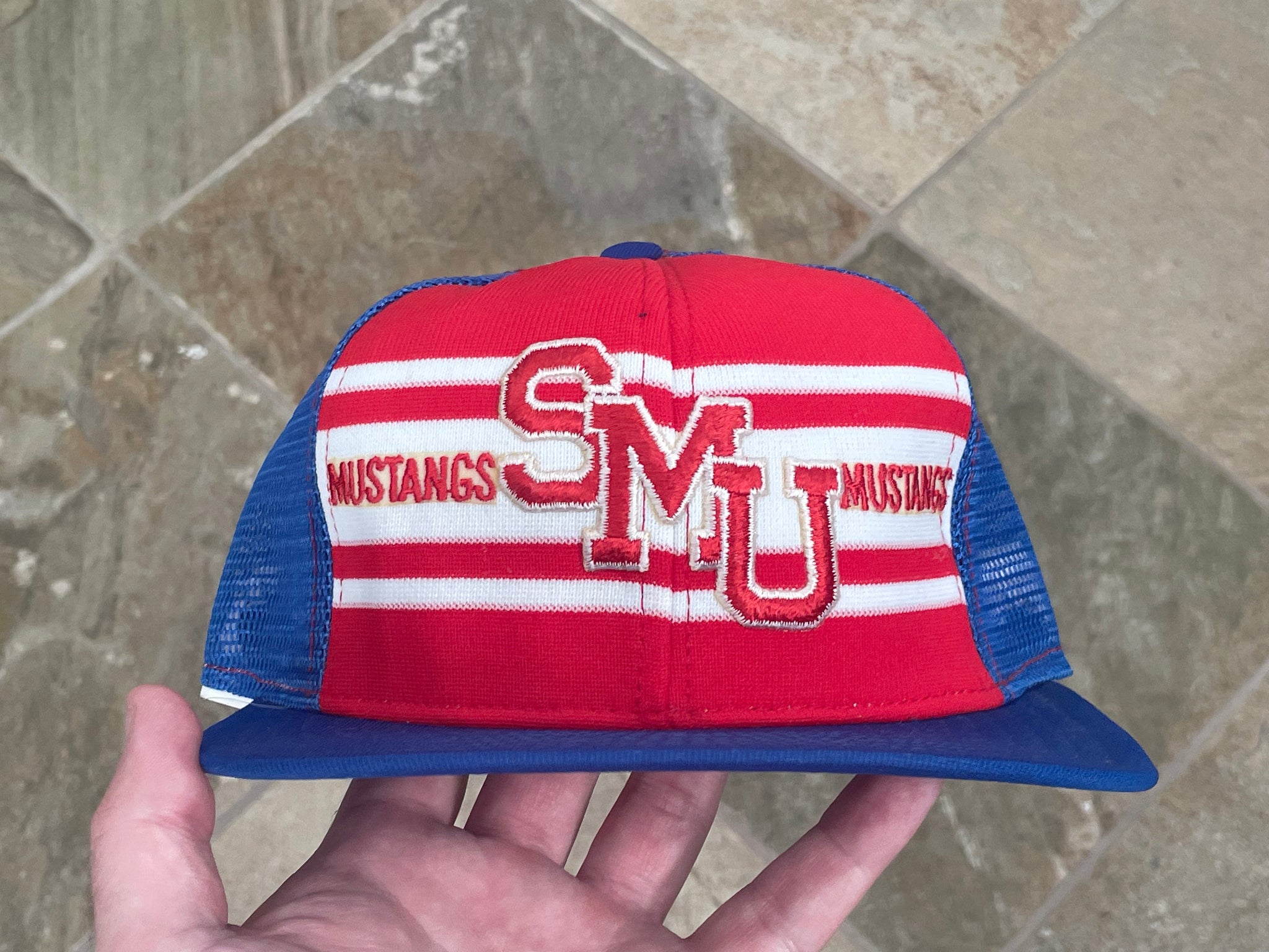 Vintage 80s Southern Methodist University SMU Mustangs AJD Super Stripes the professional Snapback College Hat. Regular size. Not advisable for large heads. New without tags. Never worn. See photos