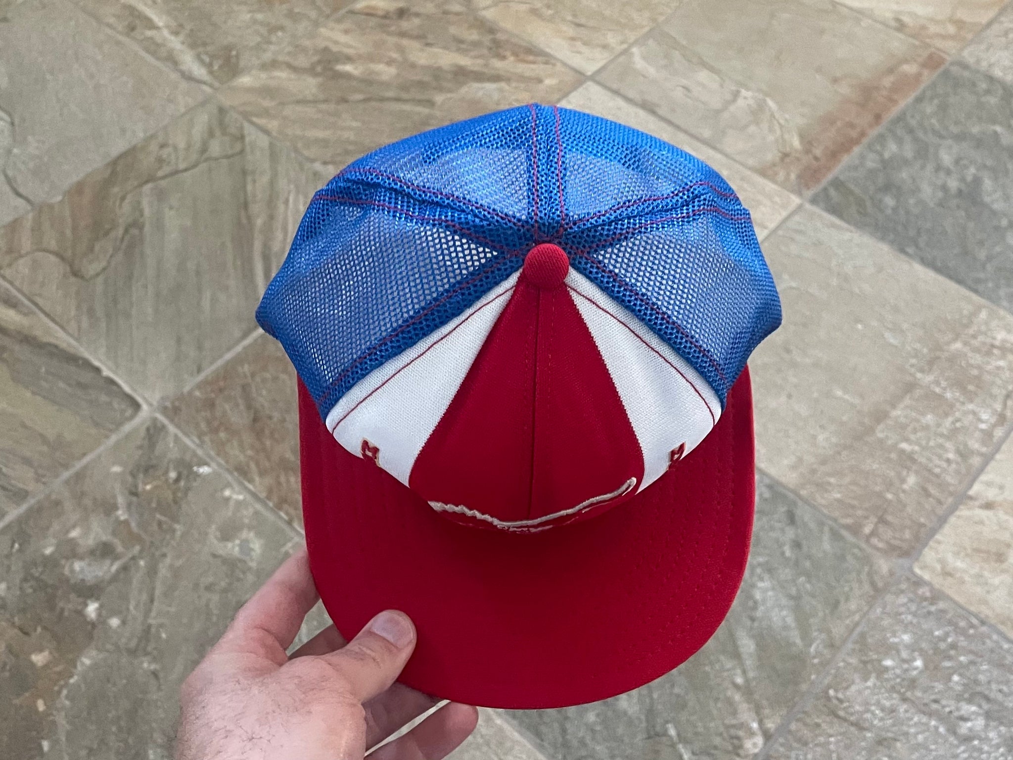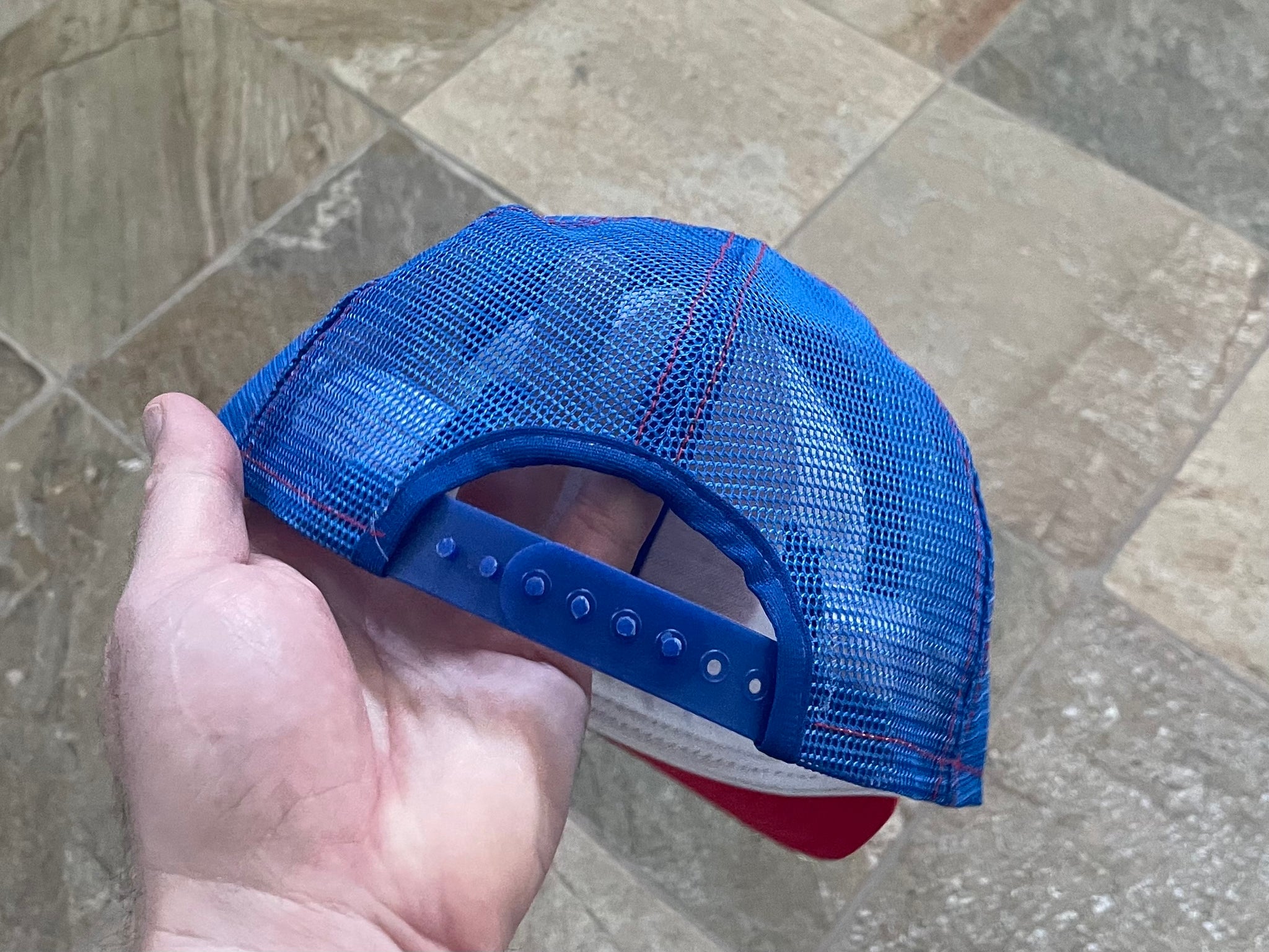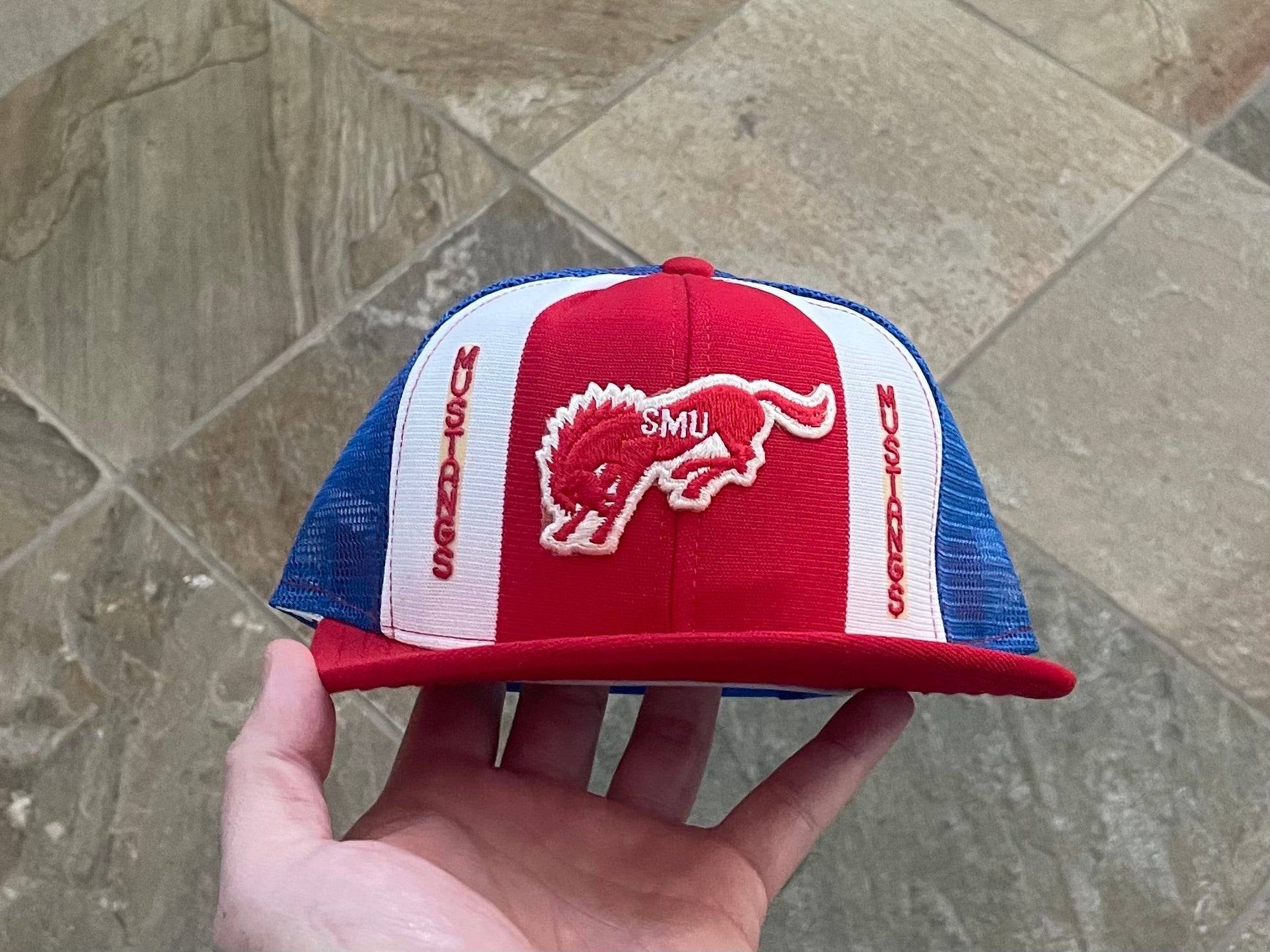 Vintage 80s Southern Methodist University SMU Mustangs AJD Lucky Stripes Snapback College Hat. Regular size. Not advisable for large heads. New without tags. Never worn. See photos