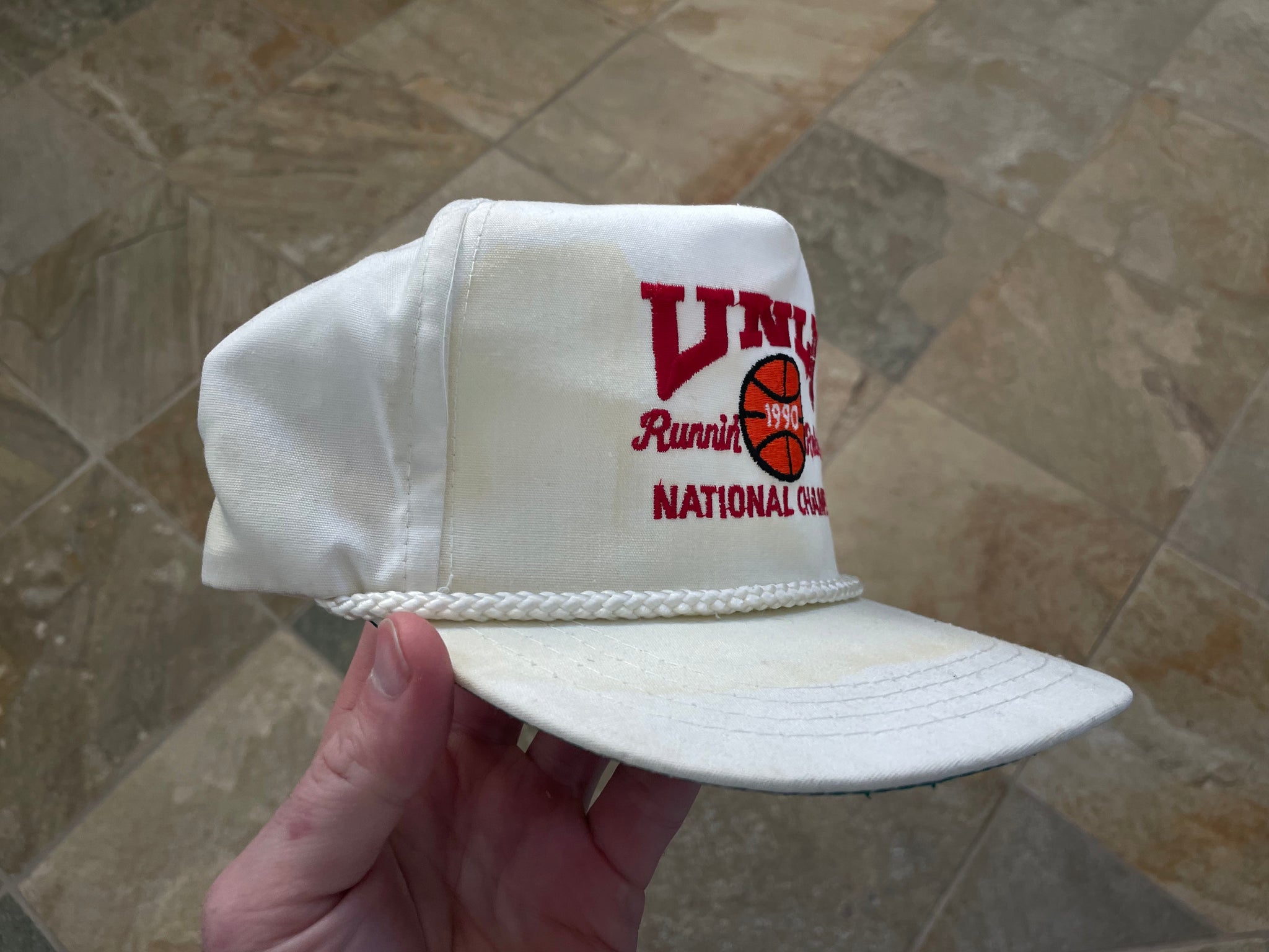 Vintage 90s UNLV Running runnin’ Rebels 1990 College Basketball National Champions Snapback College Hat. Significant yellowing o front of hat and top brim. See photos for condition. Priced accordingly