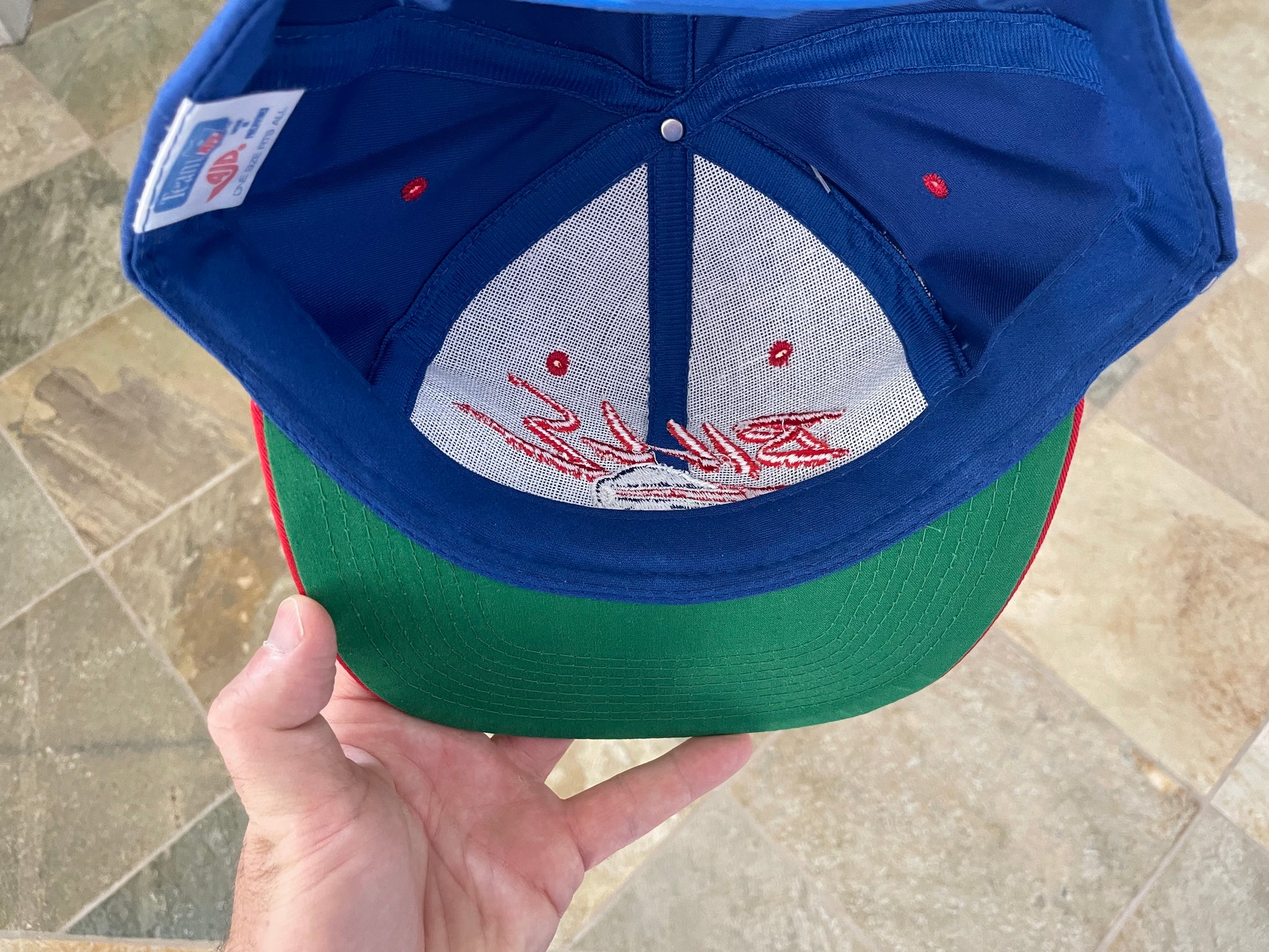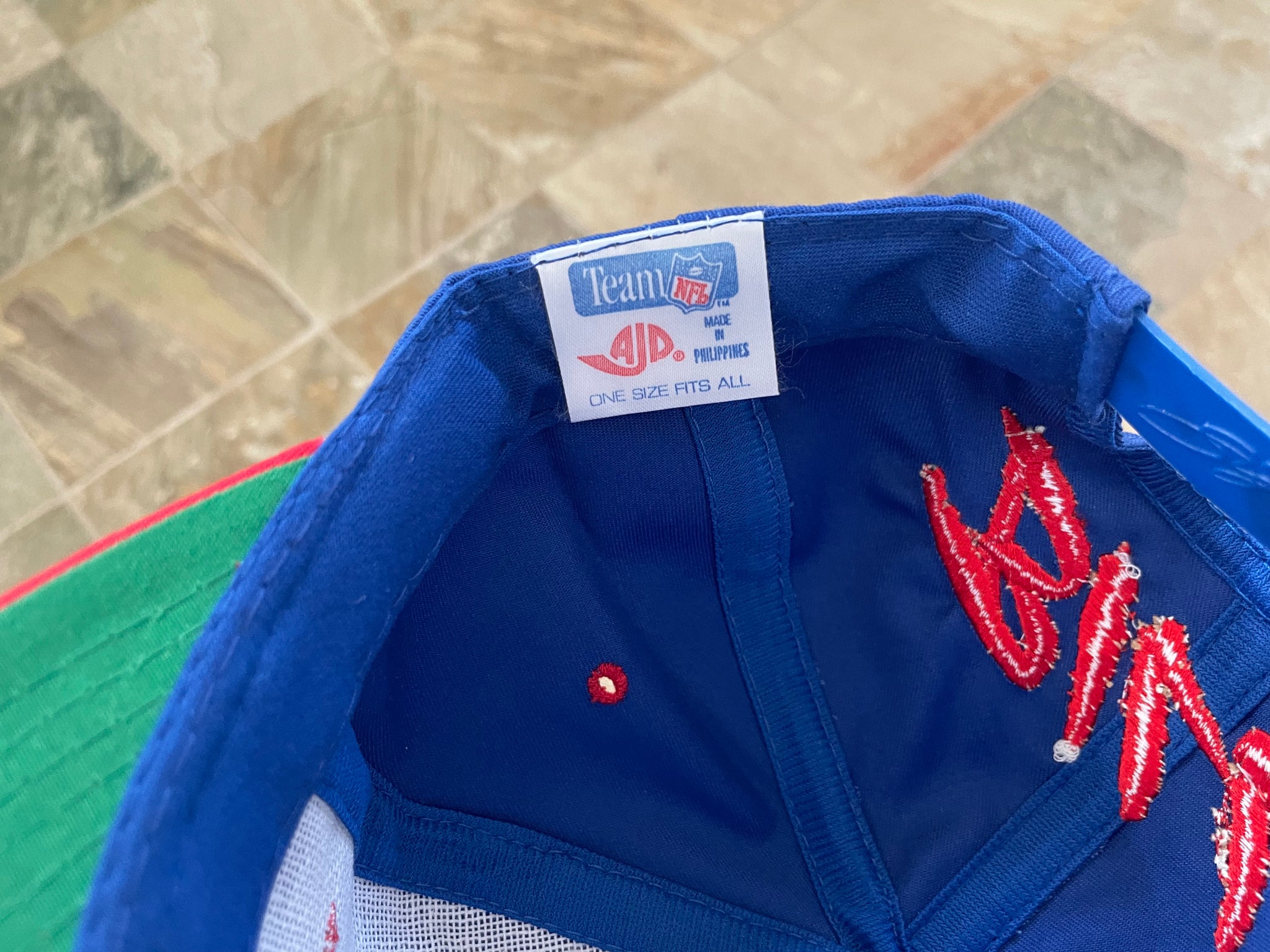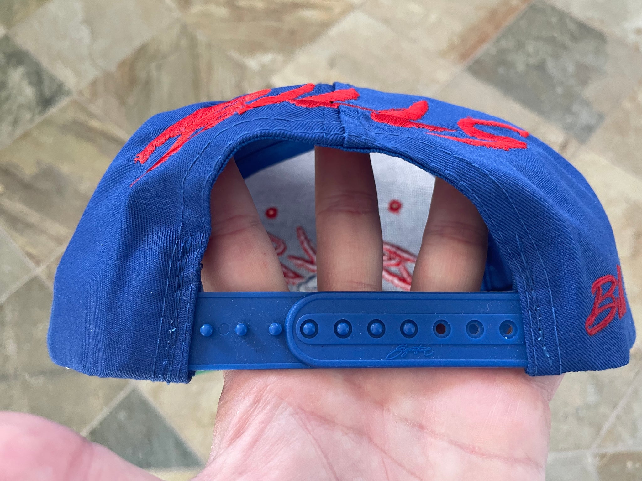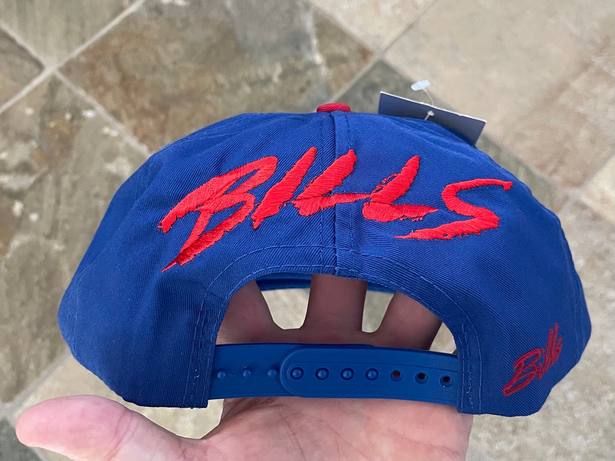 Vintage 90s Buffalo Bills AJD Signature graffiti Script Snapback Football Hat. Front and back big logo spellout. Deadstock new with tags. White spot on brim on first photo was just lint. No flaws or issues. See photos