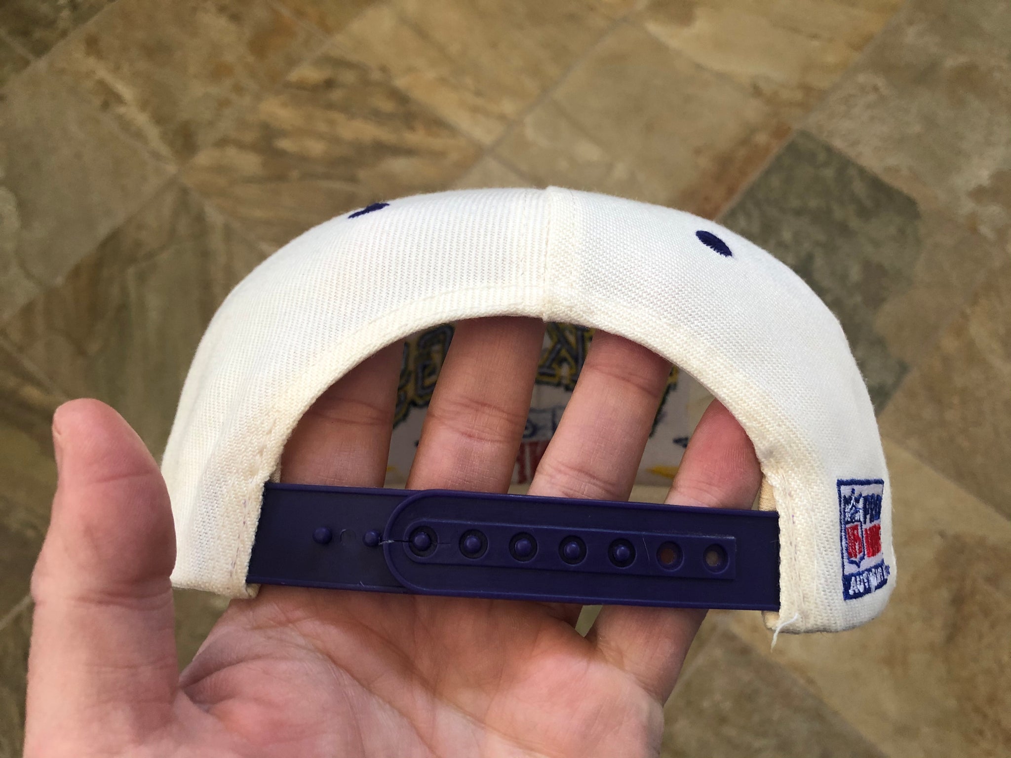 Vintage 90s Minnesota Vikings Logo Athletic Diamond Snapback Football Hat. Great condition overall. Minor wear on inside of hat. Snap has a small split at the end of snap. Not broken and still fully functional, but please be aware. See photos
