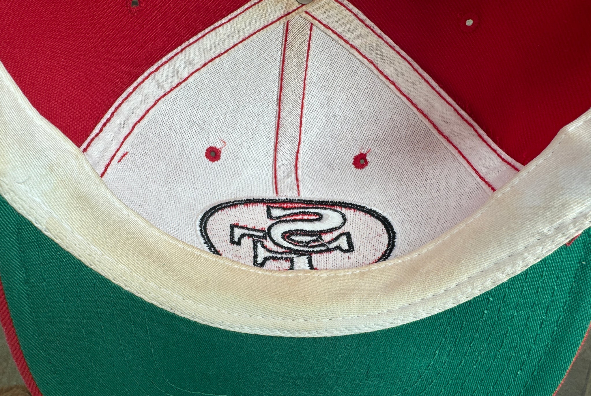 Vintage late 80s, early 90s San Francisco SF 49ers New Era Snapback Football Hat. Wool plain logo. Faint writing and wear under brim. Good, used condition overall. See photos.
