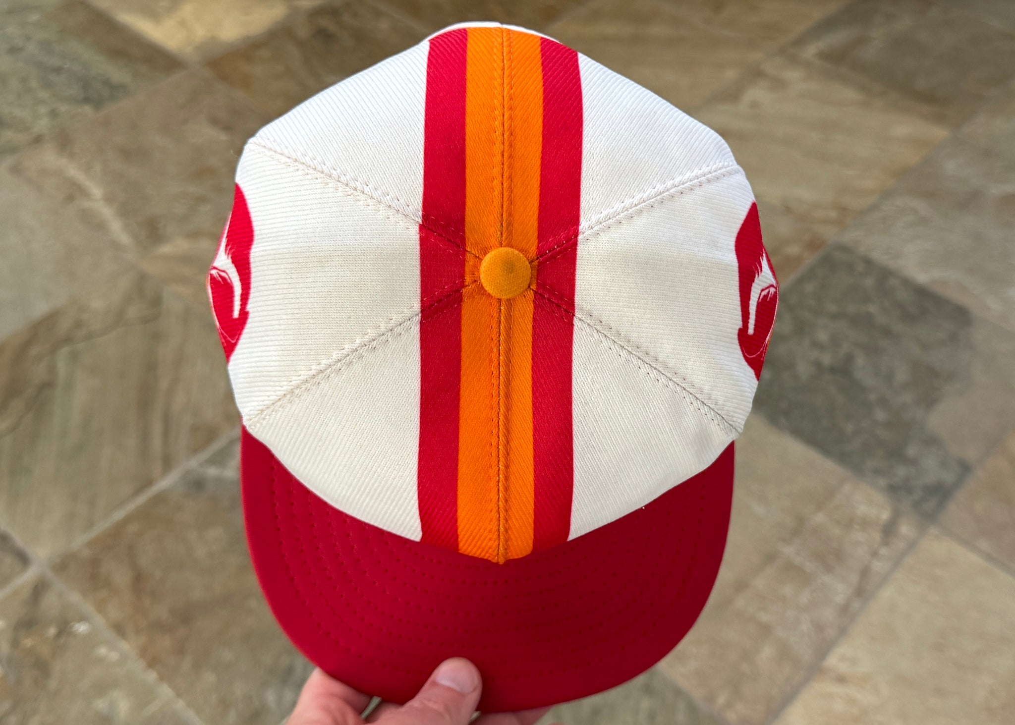 Vintage 80s 1982 Tampa Bay Buccaneers Louisville HelmetHat Snapback Football Hat. Old creamsicle logo colorway. Inner foam lining has been cleaned and shaped. Never worn. Still has original tags. See photos