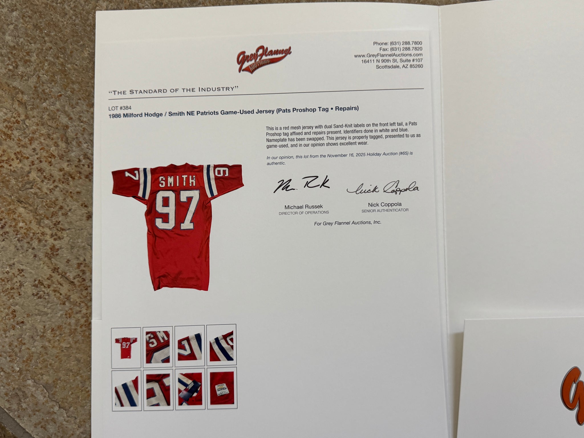 Vintage 80s 1986 New England Patriots Milford Hodge / Smith team issued Game used Worn Sand Knit Football Jersey. Size 52, XXL. Jersey has been repaired and has game use wear. name plate has been swapped from Hodge to Smith. Comes with a Grey Flannel Auciton LOA / COA. See photos for measurements