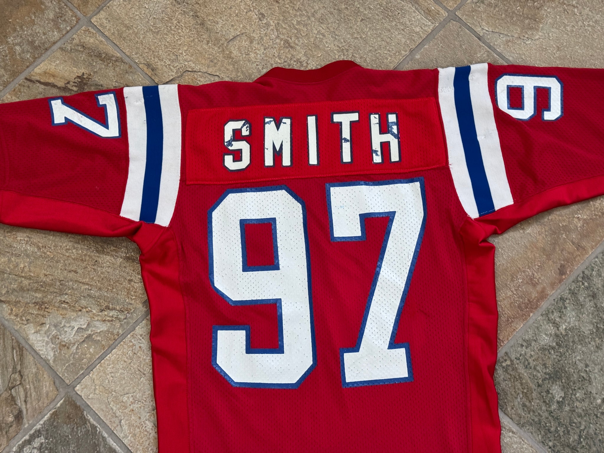 Vintage New England Patriots Hodge Smith Game Worn Sand Knit Football Jersey
