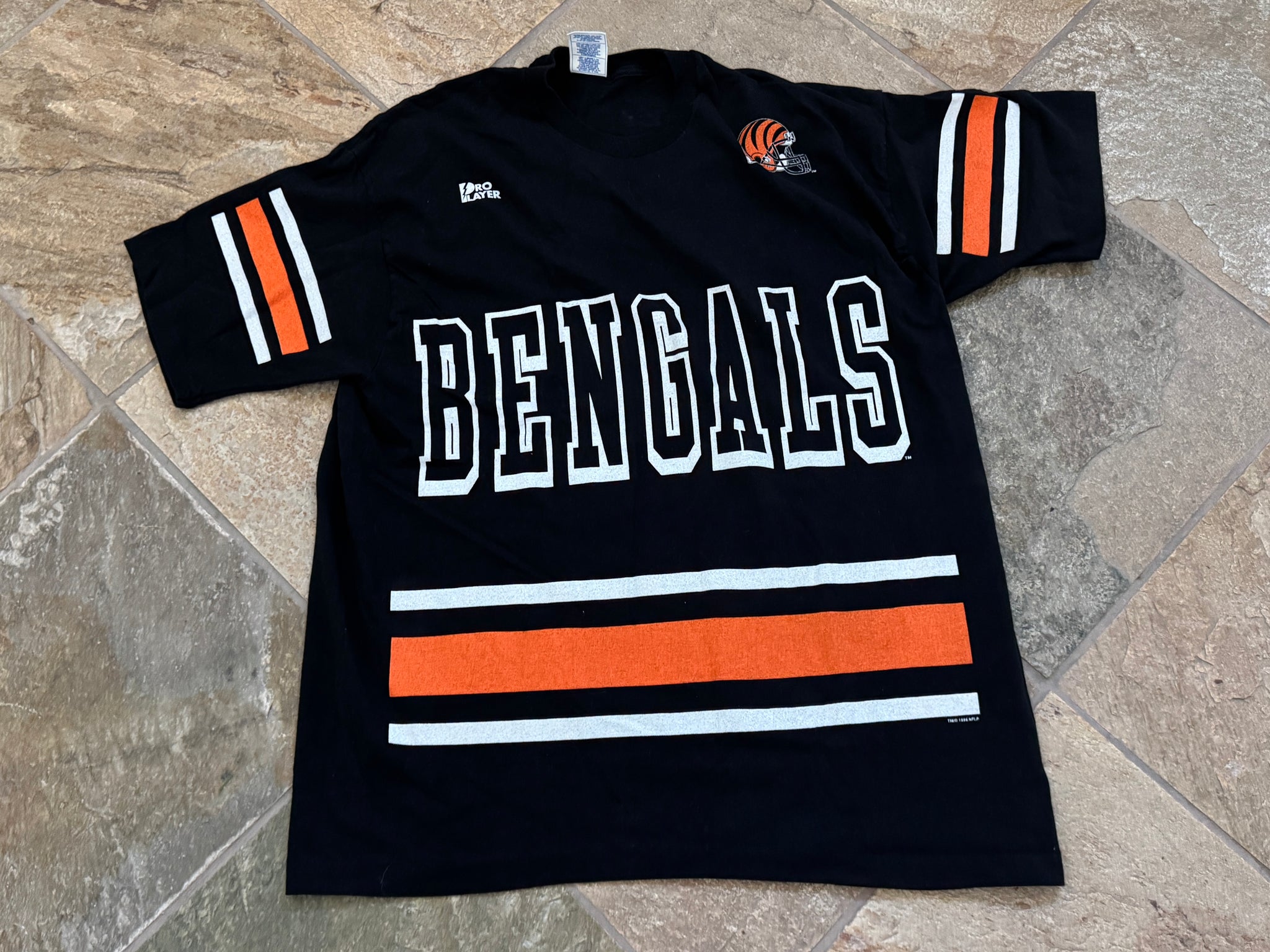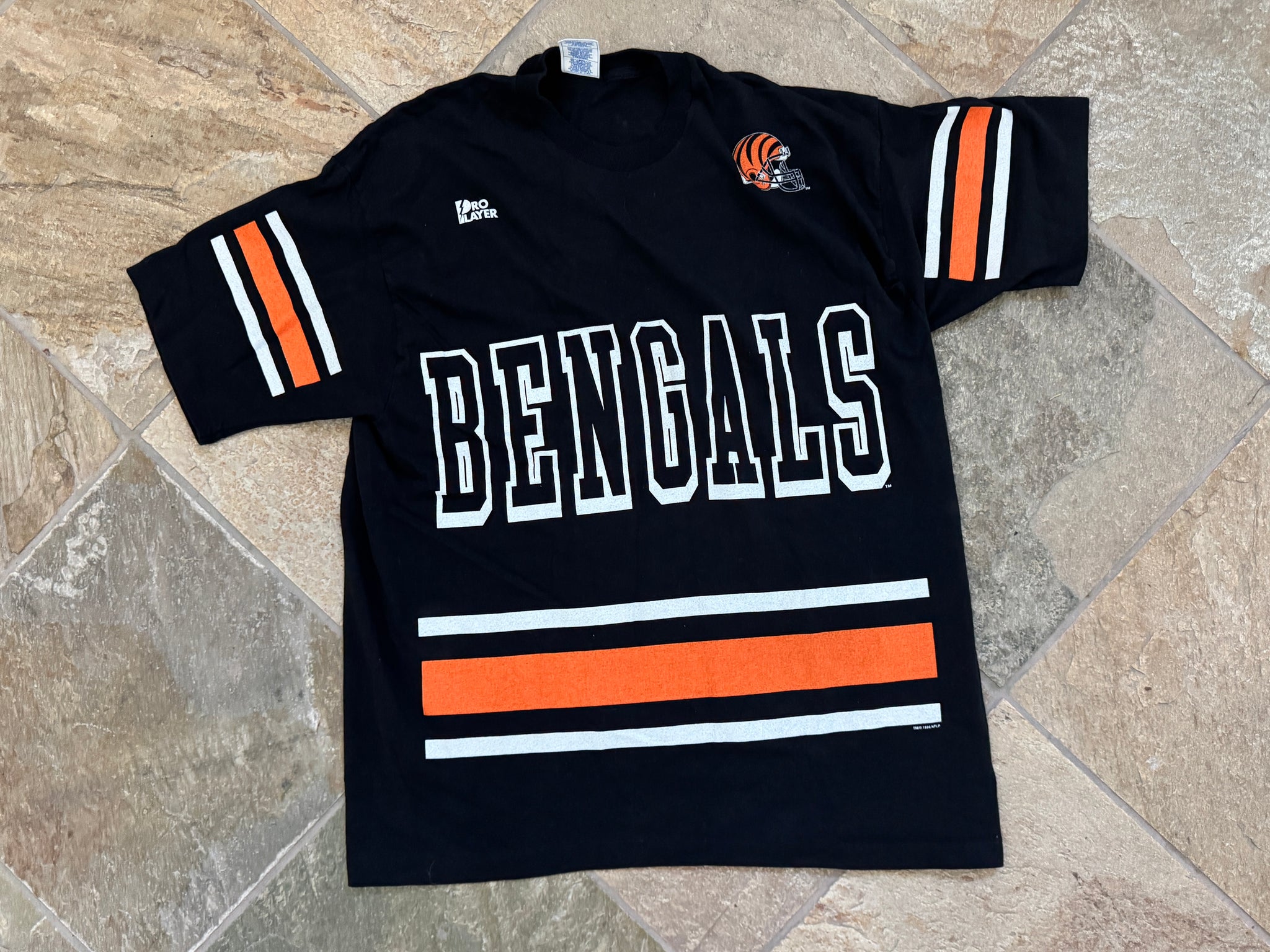 Vintage 90s 1996 Cincinnati Bengals Pro Player Football Shirt, Size double extra large. Big logo double side all over print AOP design. Great, used condition overall see photos for measurements