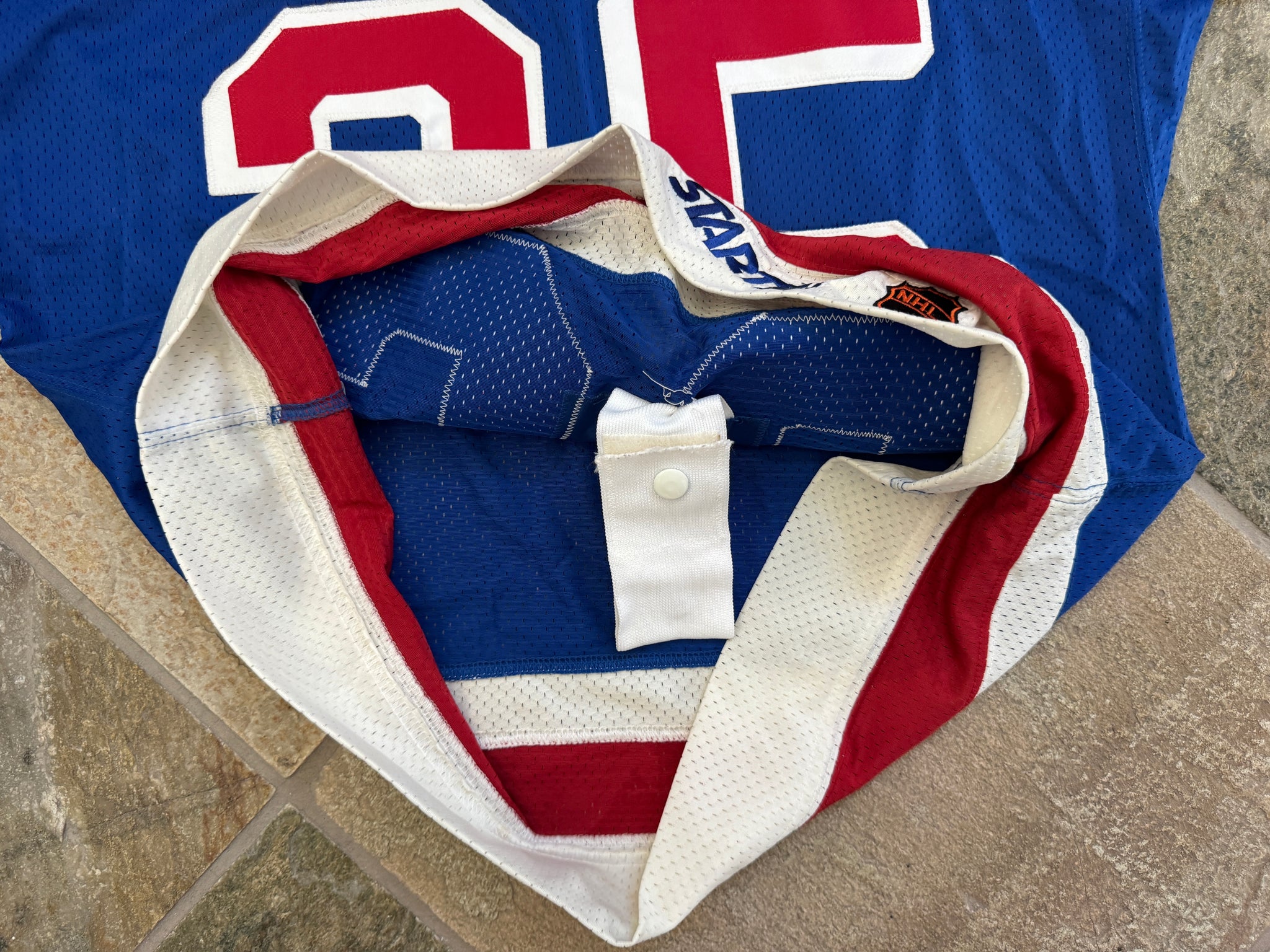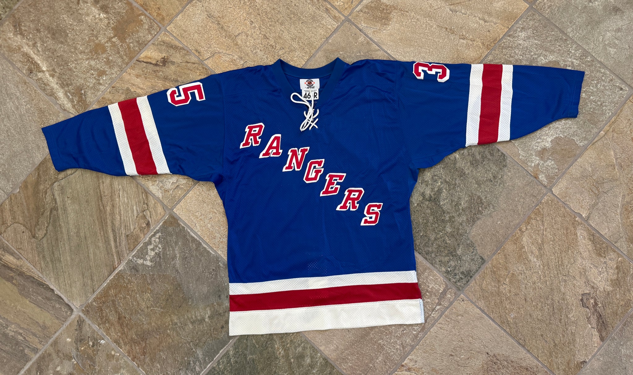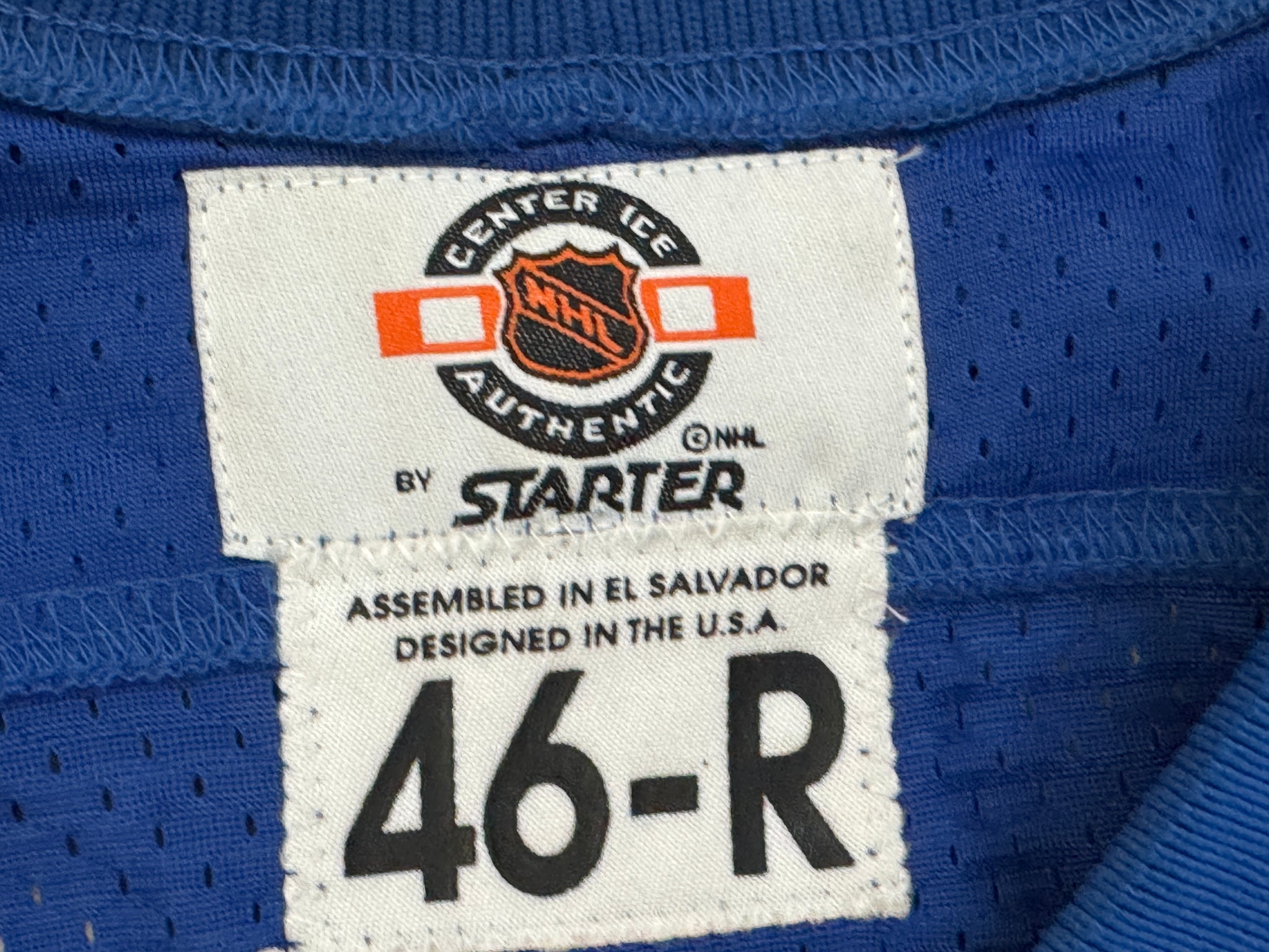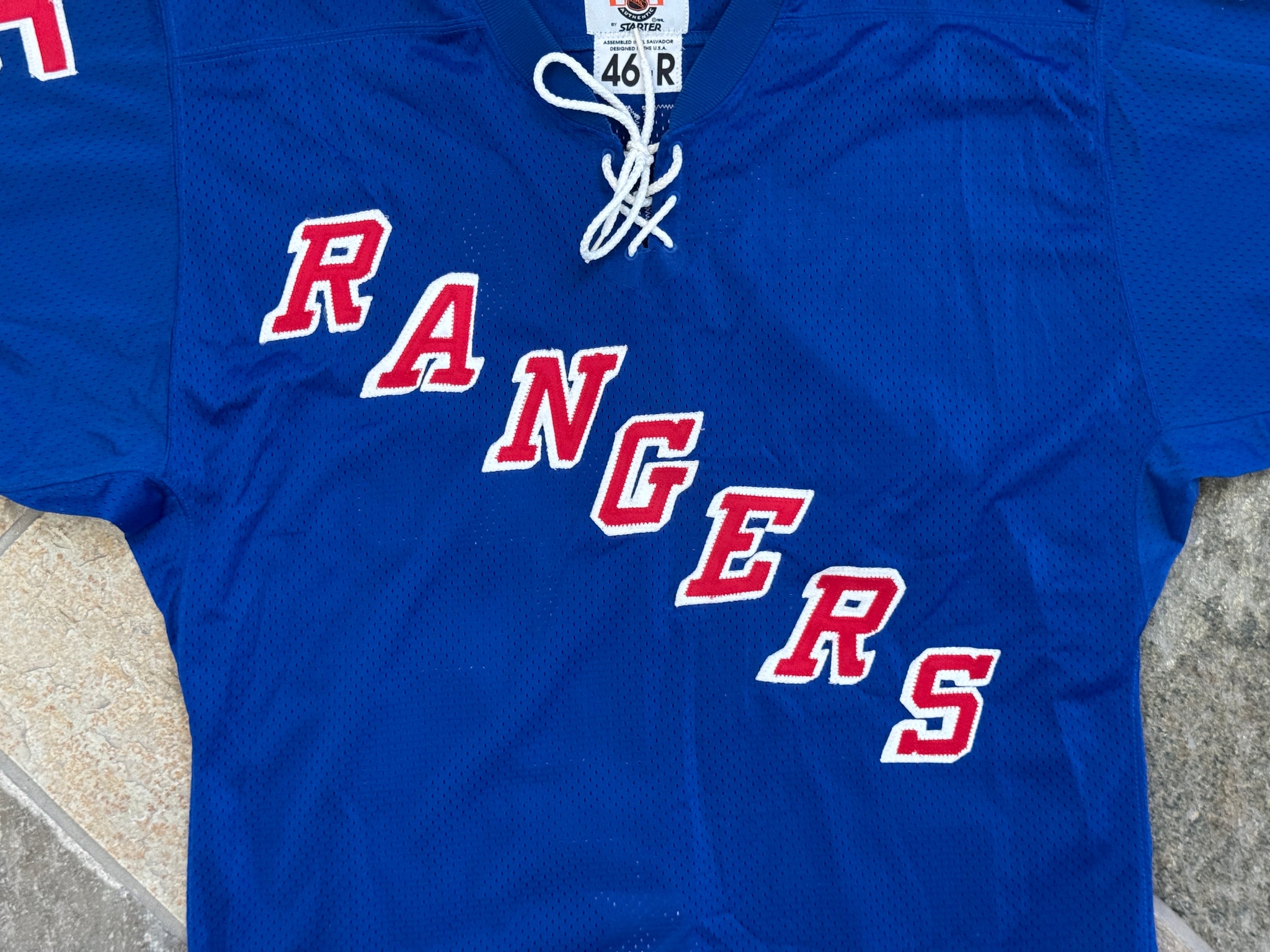 Vintage 90s New York NY Rangers Mike Richter Starter Hockey Jersey, Size 46-R. Large to extra large. Authentic sewn and stitched with fight strap. Minor wear in places. Very good used condition overall. See photos for measurements