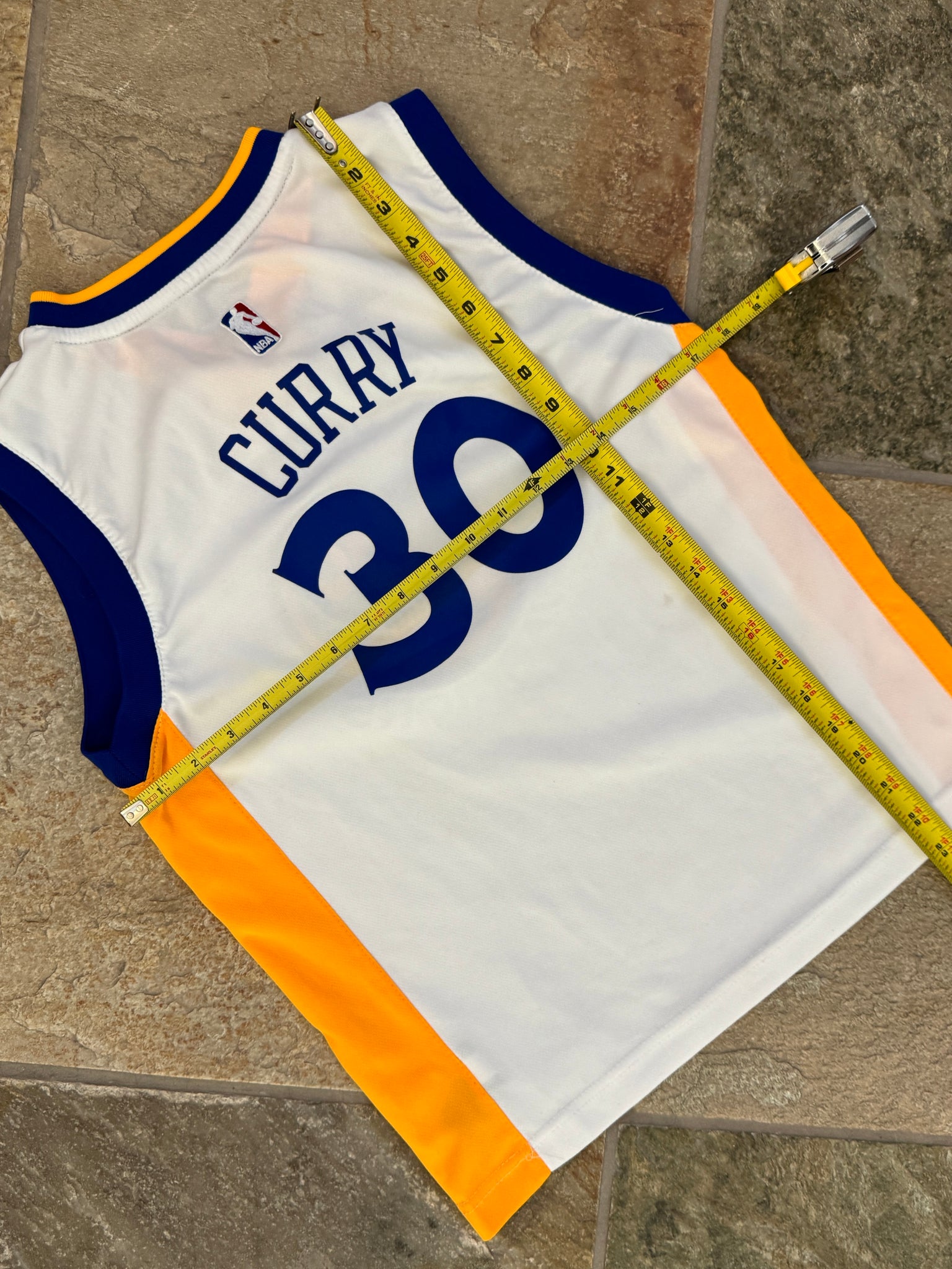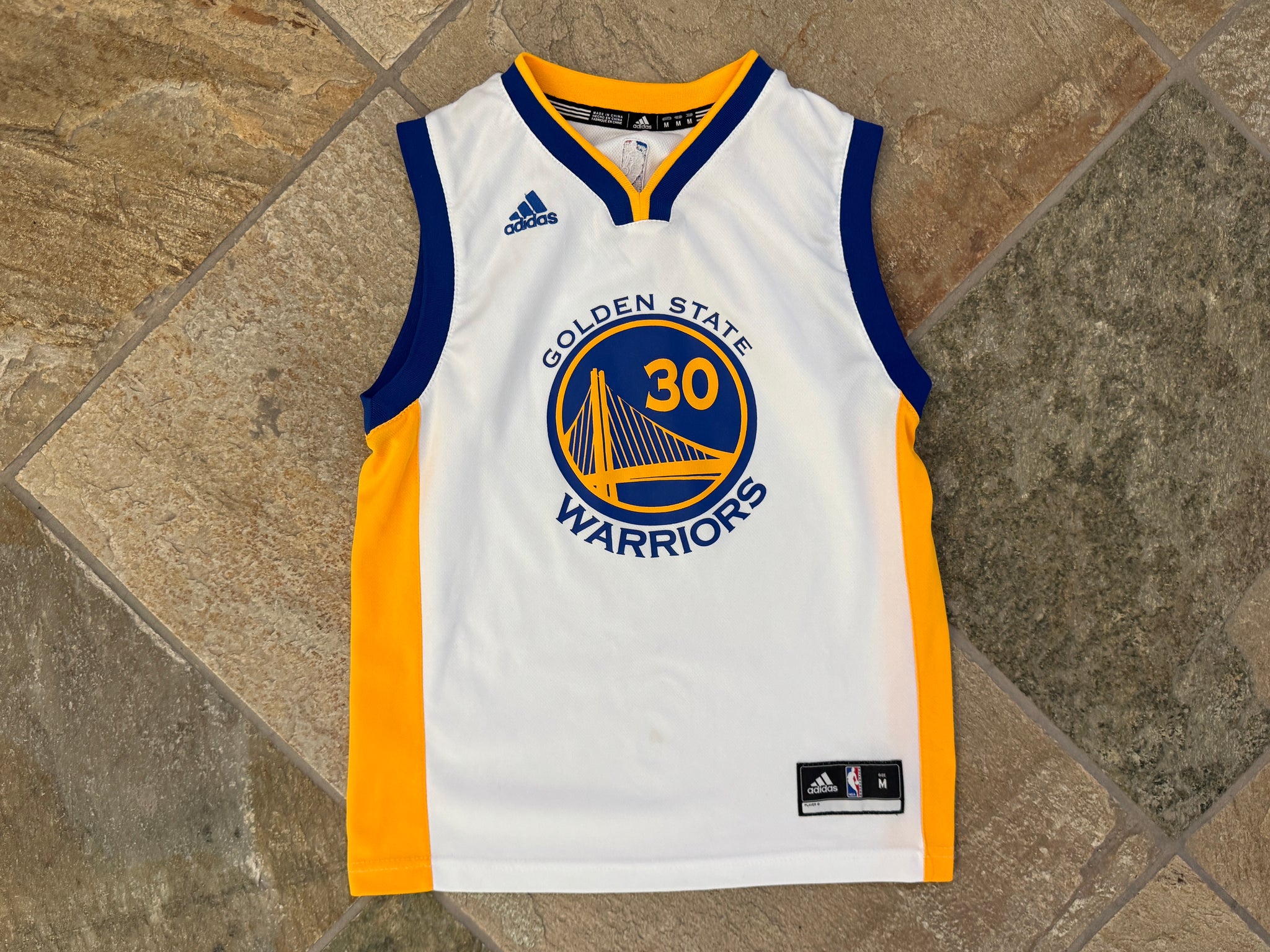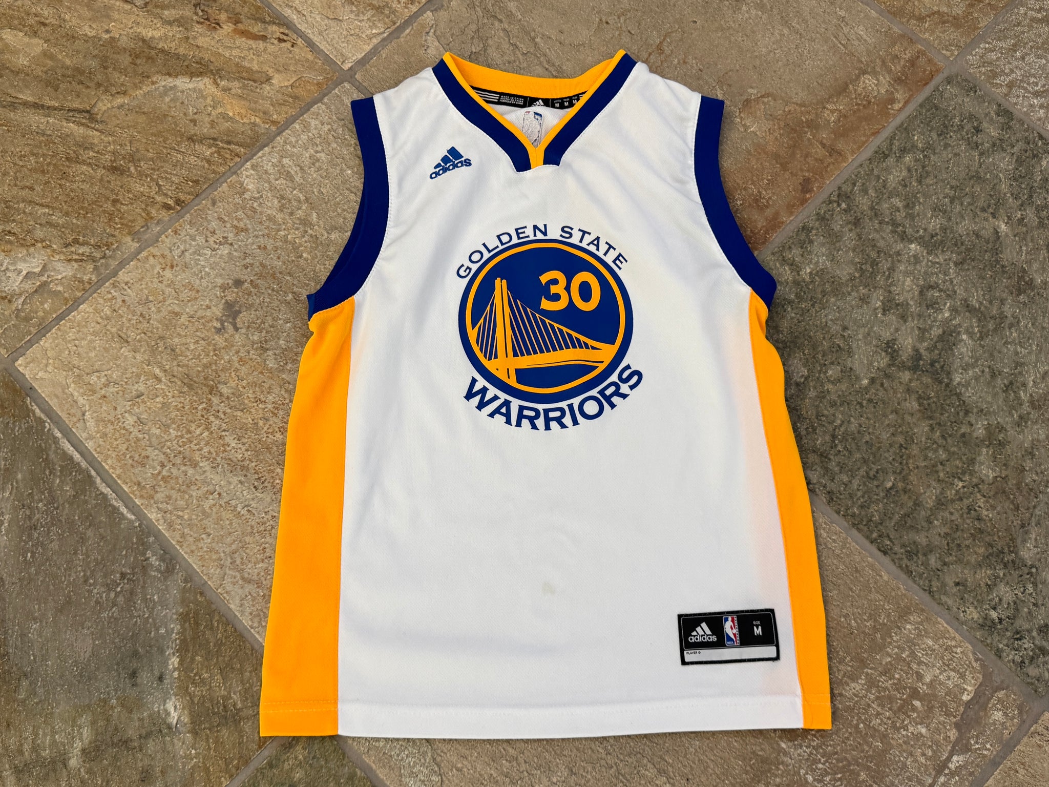 Golden State Warriors Stephen Steph Curry Adidas Basketball Jersey, Size Youth kid child Medium, 10-12. White. Minor spot on front. Hasn’t been washed. Very good, used condition overall. See photos for measurements
