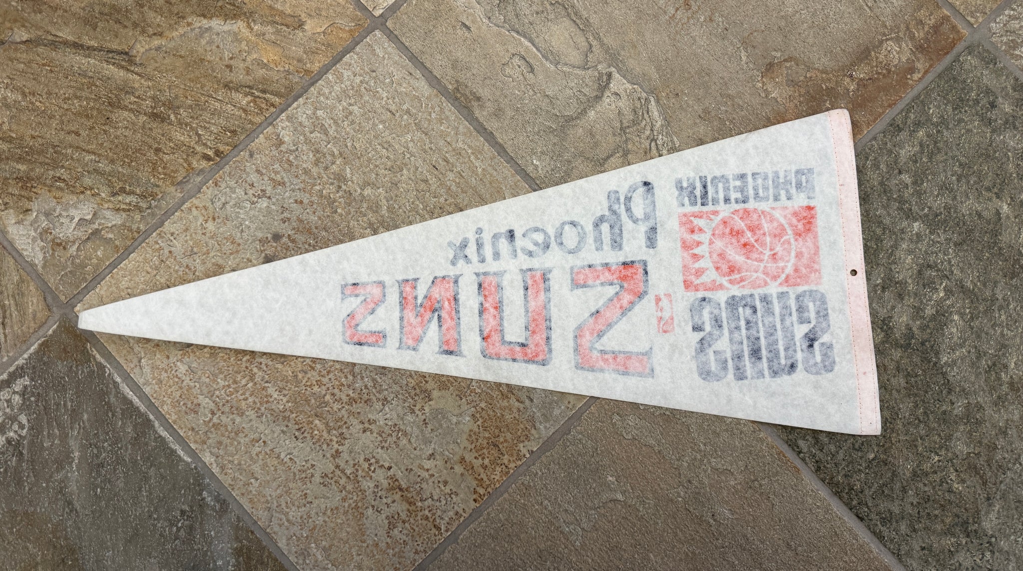 Vintage early 80s Phoenix Suns Basketball Pennant. Full size. Minor wear from age and display. Very good, used condition overall. See photos