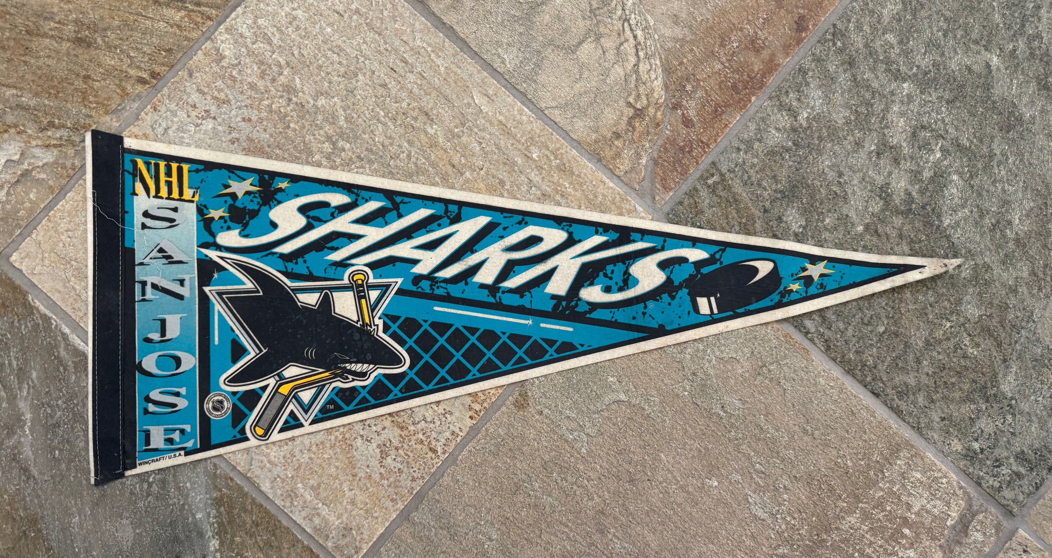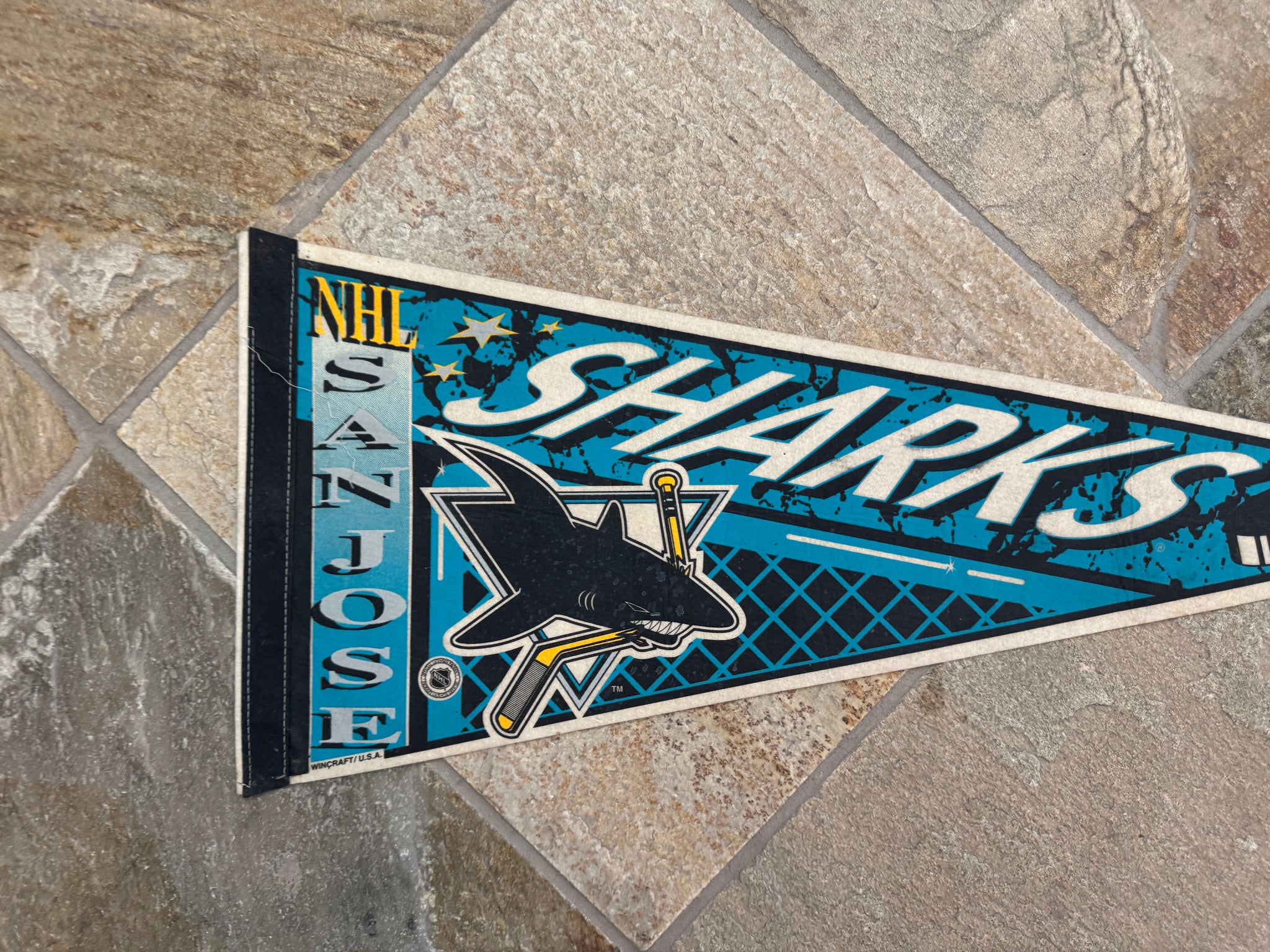 Vintage early 90s San Jose SJ Sharks Wincraft NHL Hockey Pennant. Full size. Minor wear from age and supply. Good, used condition overall. See photos