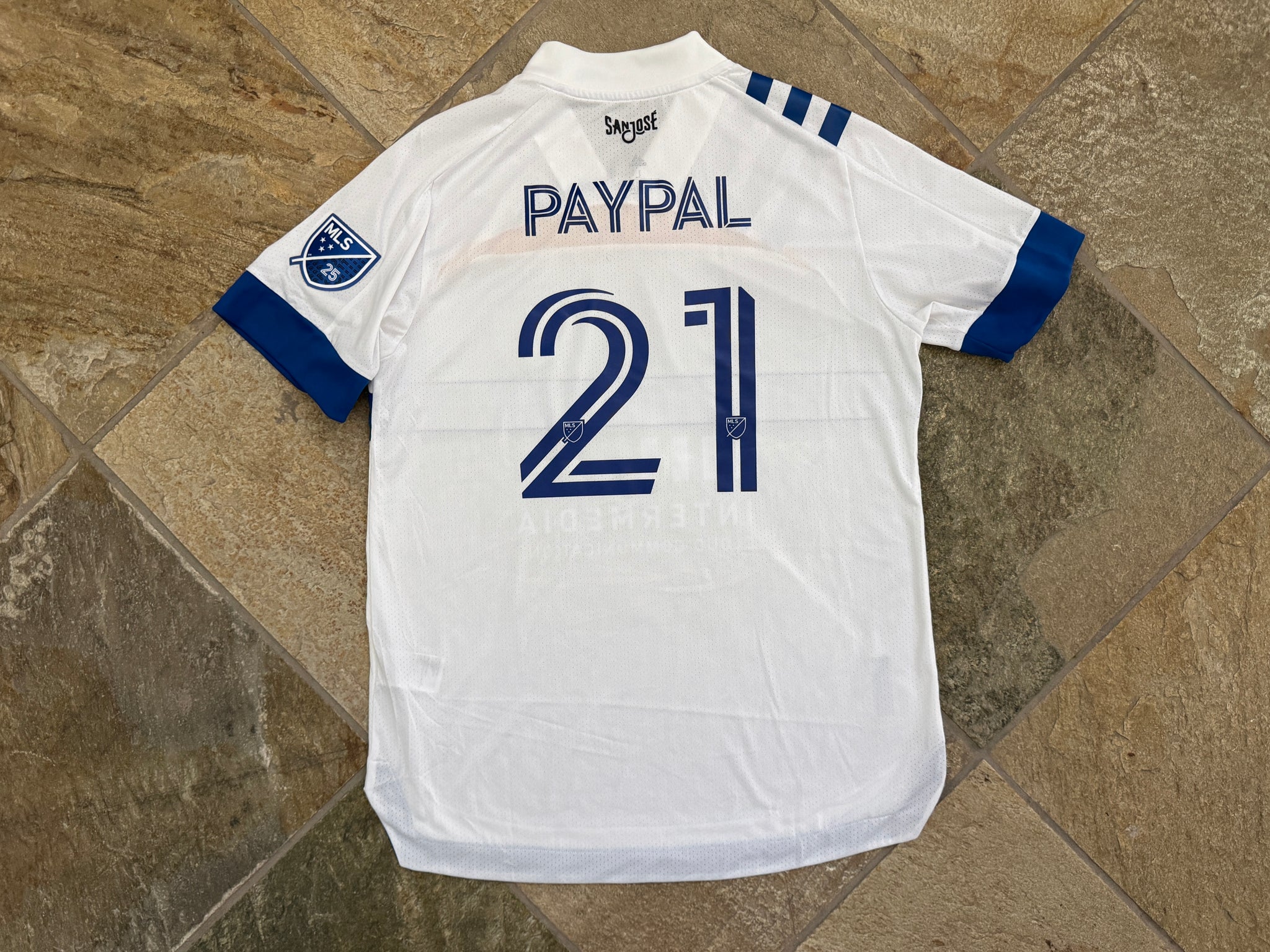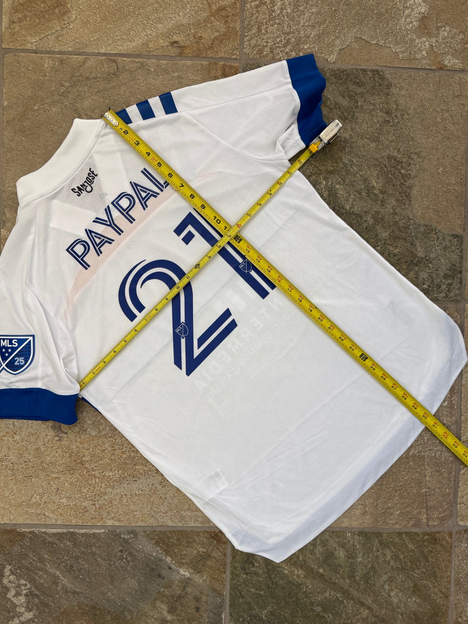 San Jose SJ Earthquakes MLS Adidas Soccer Jersey, Size Large. Team issued authentic given to PayPal staff at naming rights ceremony for PayPal park in 2021. New, never worn. See photos for measurements