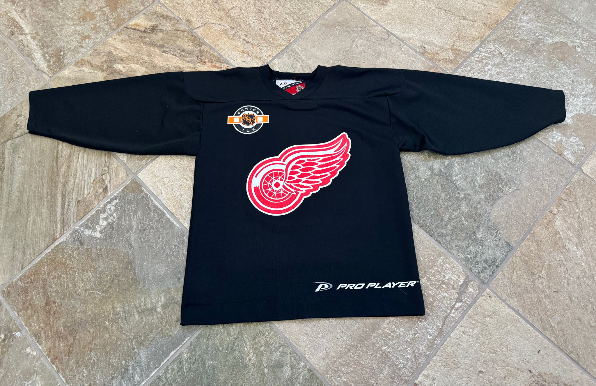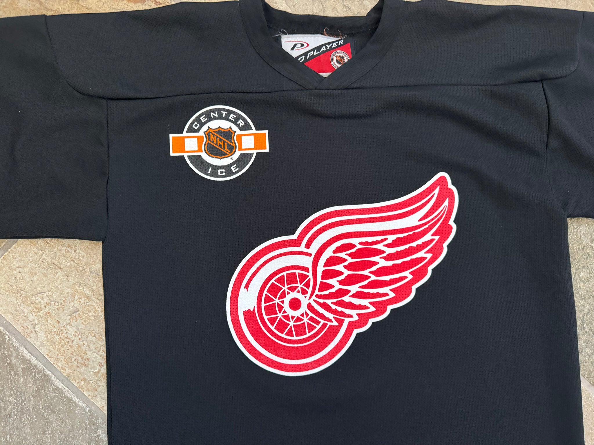 Vintage 90s Detroit Red Wings Pro Player Hockey Jersey, Size Youth Large / extra large, 18-20. Black practice style. Very good condition overall. Measures like adult men’s medium. Great size for women and teens. See photos for measurements
